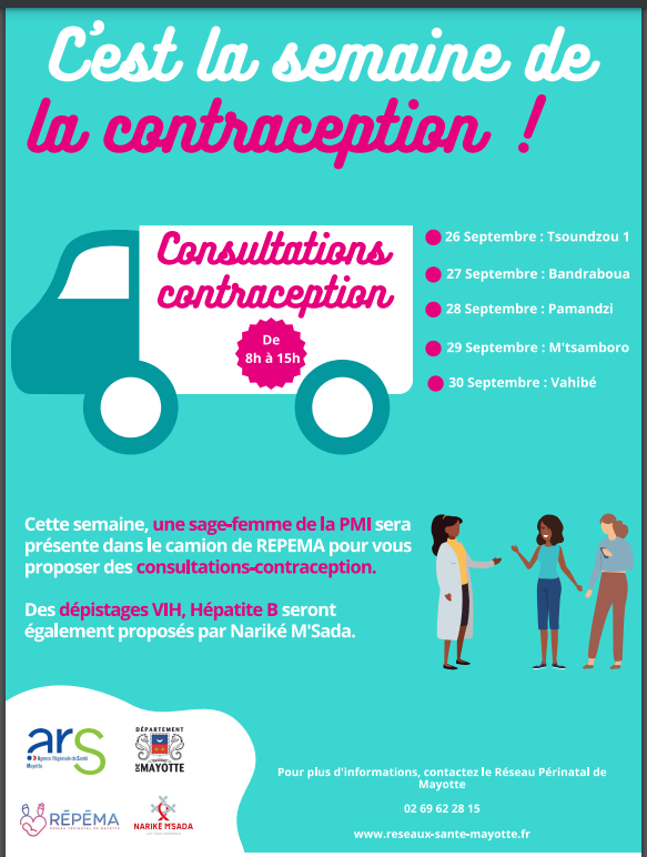 Cette semaine, une sage-femme de la PMI sera présente dans le camion de REPEMA pour vous proposer des consultations-contraception.